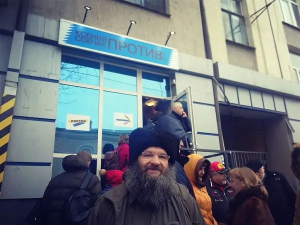 Томительное ожидание опоздавшей Собчак разбавил казак Сергей Тюкавкин. Долгое время он состоял в ЛДПР и занимался идеологией партии, а теперь решил поддержать нового кандидата.