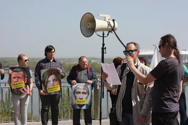 В субботу, 29 апреля, на смотровой площадке на Седова в Ростове состоялся митинг с прекрасным видом на Дон и строящуюся «Ростов-Арену». Всероссийскую акцию #надоел подержали около сотни людей, включая журналистов и праздношатающихся.