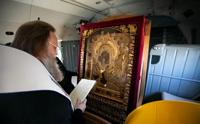 В вертолёте находилась Донская икона Божьей Матери — точный список чудотворного образа Пресвятой Богородицы.
