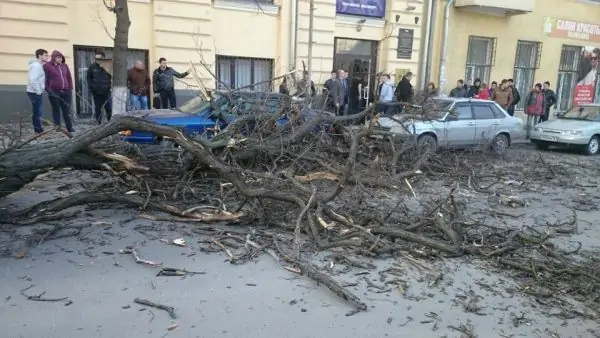 Так, около 09:00 в Ростове в районе дома № 62 по улице Серафимовича на припаркованные машины упала огромная ветка.