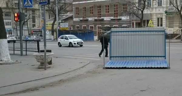 Ещё одно ЧП произошло в Ростове на перекрёстке Будённовского и Лермонтовской — порыв ветра снёс часть металлического заграждения стройки и начал кидать его со стороны в сторону по проезжей части.