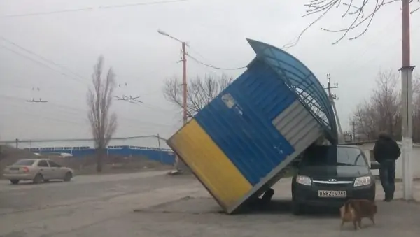 На Николаевском шоссе в Таганроге автобусная остановка упала на «ВАЗ», фото из группы соцсети «Мой Таганрог»