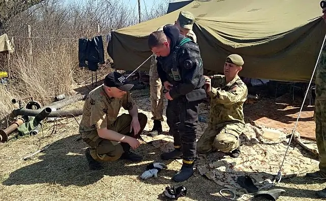 1 апреля у реки Миус был разбит круглосуточный лагерь, в котором постоянно кипит работа по подготовке к подъёму танка.