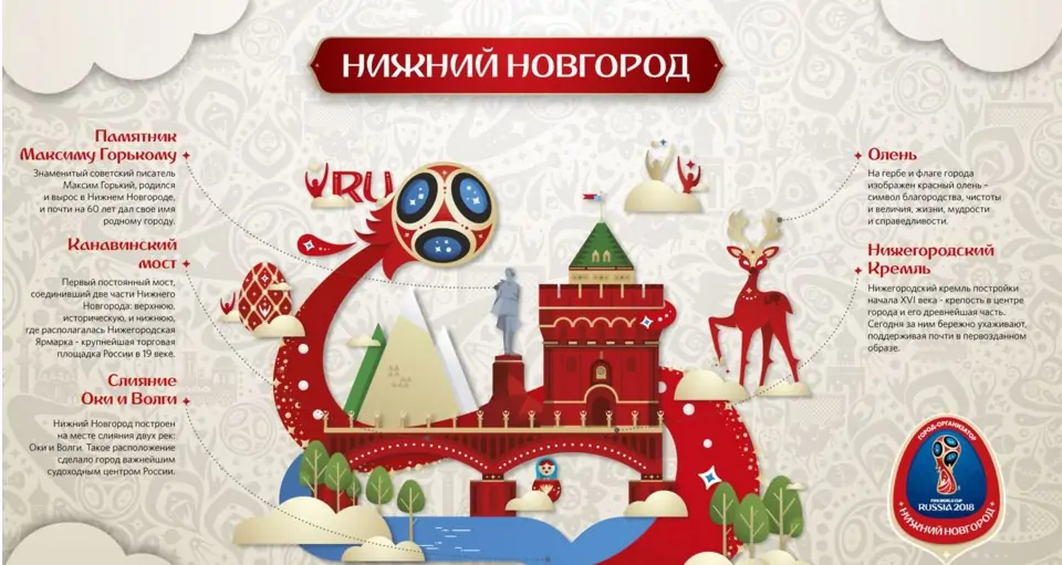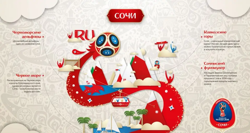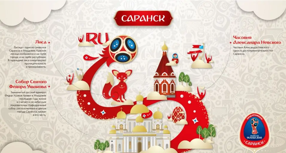Как сообщил гендиректор оргкомитета «Россия-2018» Алексей Сорокин, разрабатывая фирменный стиль, оргкомитет намерен повысить туристическую привлекательность России, рассказать всему миру о городах и уникальных местах с помощью визуальных образов.