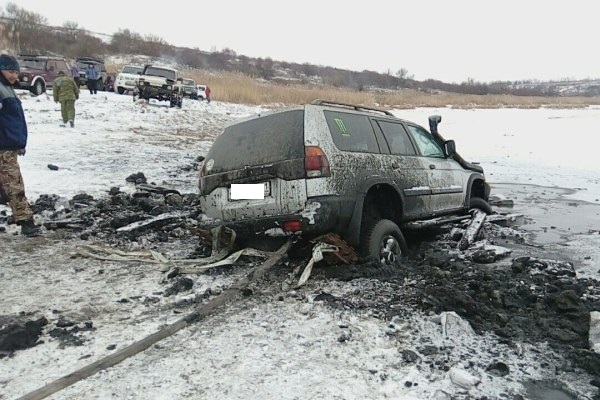 Почти сутки потребовалось для того, чтобы вытянуть на берег застрявший в зимнем пруду Mitsubishi Pajero.