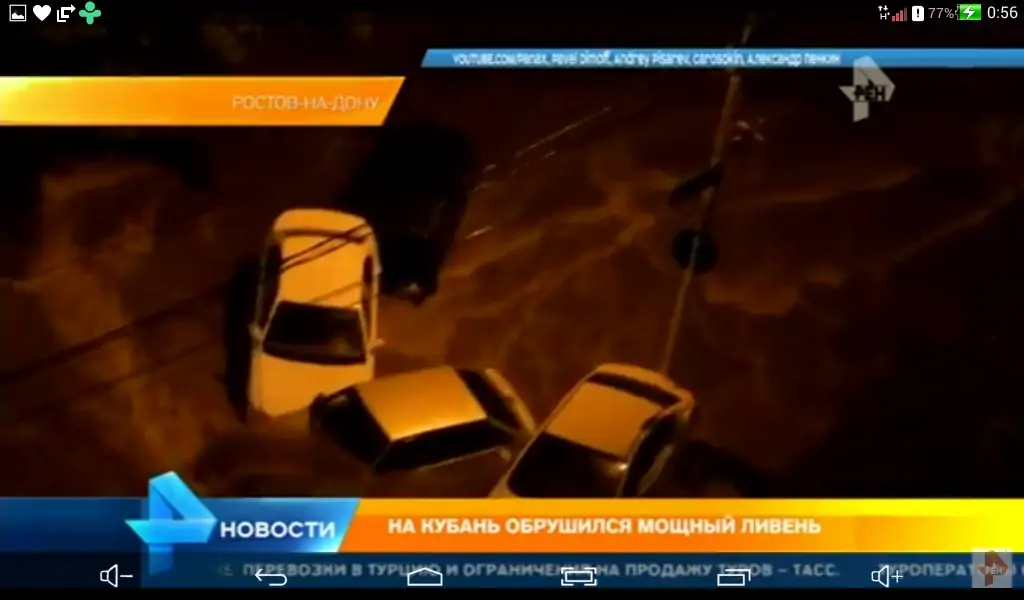 Также в сети появились несколько скриншотов с сайта, которые запечатлели титры, сделанные каналом к новостям об аномальном ливне в Ростове. Там, в частности, сообщалось, что «на Кубань обрушился мощный ливень».
