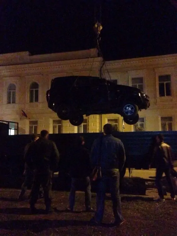 Уже спустя полчаса, на место происшествия приехал кран и эвакуатор, которые отвезли «УАЗ» в воинскую часть. Чуть позже фото-подтверждение появилось в соцсети — машину с помощью крана «перебрасывают» через забор.