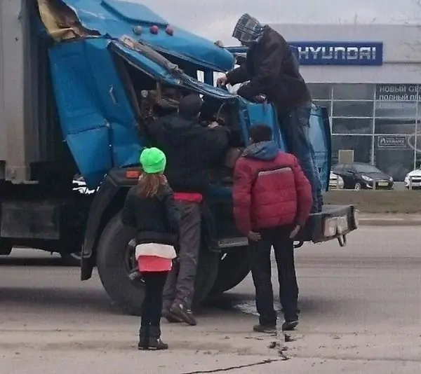 «Кран смёл «Камаз». В «Камазе» сидели три человека — двое мужчин и девочка. Пострадал водитель, ударившийся головой. Отвели всех на заправку, чтобы грелись, заправщики угостили чаем и едой. Сами люди с Гуково», — написал очевидец аварии Андрей Хмелинин и опубликовал несколько фотографий с места происшествия.