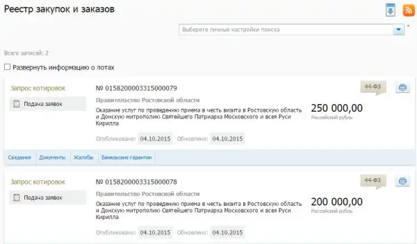 Конкурсная документация разделена на два отдельных документа — на сумму 200 и 250 тысяч рублей. Количество участников банкета — 160.