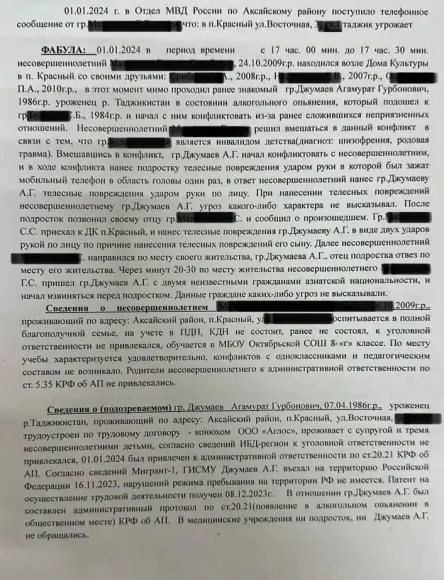 Как сказано в сообщении СК, следователи обратили внимание на публикацию в соцсетях, согласно которой 1 января 2024 года мигрант ударил местного подростка металлическим телефоном по виску.