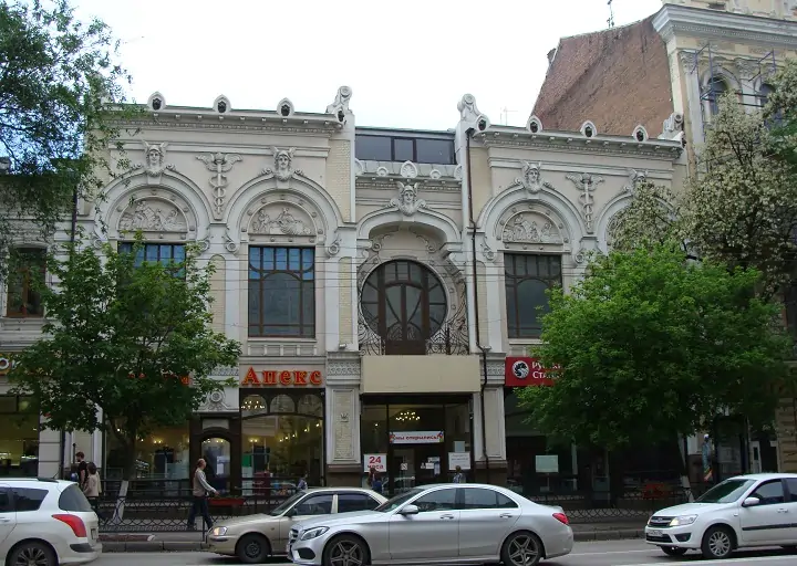 Второе здание, выставленное на продажу на Avito — это знаменитый «Торговый дом купца Яблокова» на Большой Садовой, 64. Он был построен в 1898 году. В 1906 году здесь открылся один из первых в Ростове кинотеатров. В советское время здесь также был кинотеатр, который назывался «Комсомолец».