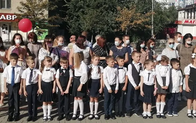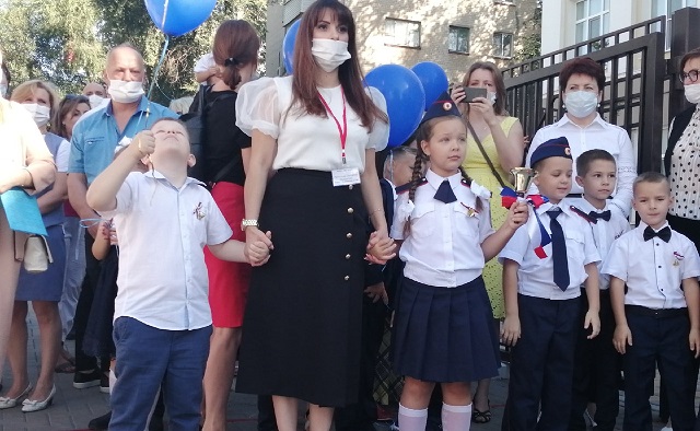 Но к правилам санитарной безопасности прислушались не все — большинство взрослых были без масок, да и о соблюдении дистанции речи не шло. Конечно, на линейках, посвящённых Дню знаний, было, как всегда, море цветов и улыбок. Прозвучали и «первые звонки», после которых ученики отправились на свой первый урок.