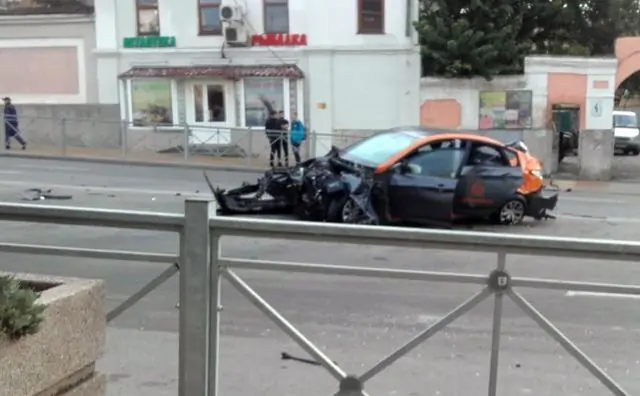 После столкновения Hyundai смяло, фото «Ёрш. Новочеркасск»