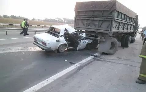 36-летний водитель «ВАЗ-2107», по предварительным данным, находясь в утомлённом состоянии, не справился с управлением и врезался в «Камаз», припаркованный на обочине с включенными аварийными сигналами.