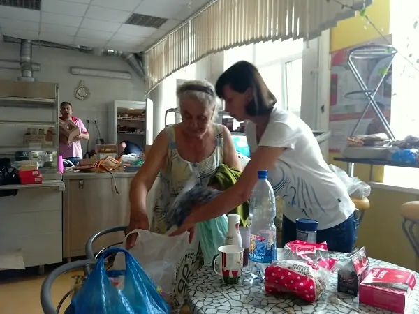 В присутствии журналиста donnews.ru десятки людей привезли в пункт сбора вещи, воду и предметы гигиены. По словам чиновников, пункт будет работать до тех пор, пока в нём будут нуждаться пострадавшие.