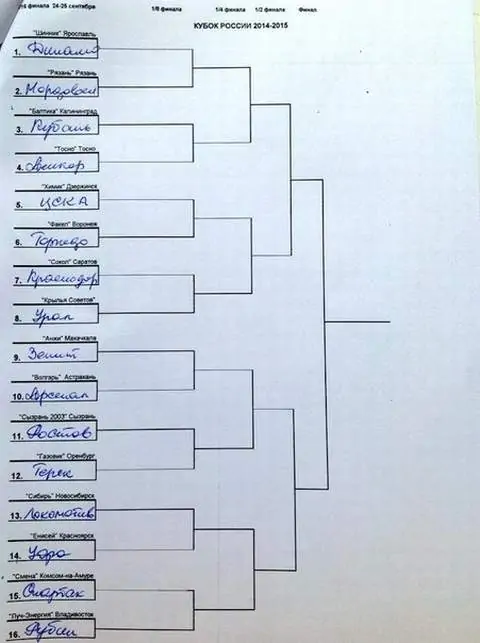 Во вторник, 2 сентября, в московском Доме футбола на Таганке прошла жеребьёвка матчей 1/16 финала розыгрыша Кубка России 2014/2015 годов.