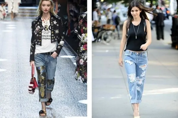 рваные - это прорези, дырки, свисающая бахрома, которые делают фасон модным и эффектным. Контрастируйте в составление образа - надевайте их под романтичные шифоновые и шелковые блузы, под свитшоты в цветочный принт и свитера с оригинальным декором из бантов;