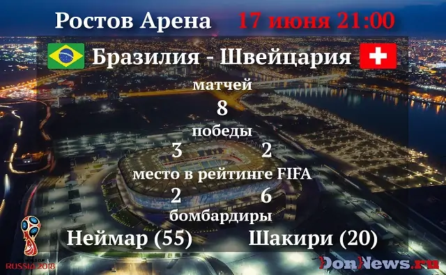 В Ростове 17 июня сборные Бразилии и Швейцарии открыли очной встречей ЧМ-2018. Donnews.ru весь день в режиме реального времени следил за сумасшествием в городе и игрой на стадионе.