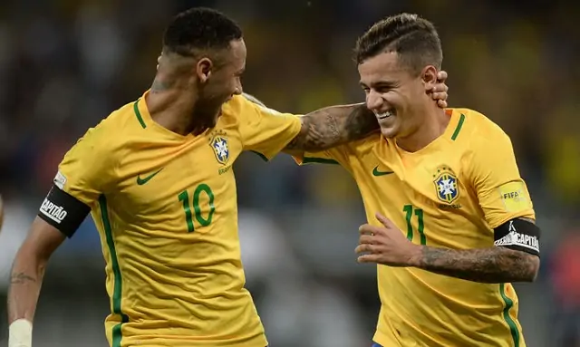 Неймар (№10) и Коутиньо сыграют в Ростове против швейцарцев. Фото Getty Images