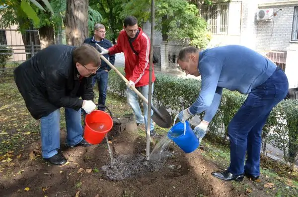 Депутаты Законодательного собрания регулярно принимают участие в субботниках и Днях древонасаждения. Вот и в этот раз они не только убрали территорию, но и высадили у центра молодые клёны.