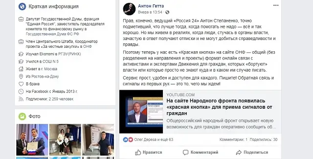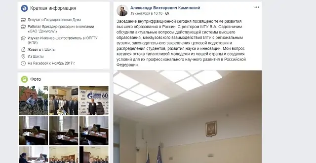 Из 10 депутатов страниц в Facebook нет только у двух — Александра Шолохова и Михаила Чернышева. Бывший спикер парламента Ростовской области Виктор Дерябкин последний пост сделал 15 сентября, как раз на открытии первого заседания Заксобрания нового созыва.