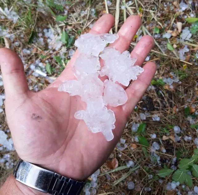 Кроме ливня и сильного ветра в Волгодонске прошёл град размером с перепелиное яйцо.