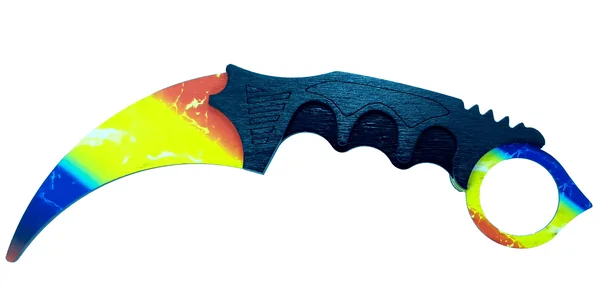 Выбор игрушечного оружия очень большой. В категории товаров по мотивам CS:GO можно найти красивые ножи из дерева с яркой раскраской, включая модель Karambit (мраморный градиент), почти полностью повторяющую аналог из игры Counter-Strike: Global Offensive. Это один из самых популярных видов холодного оружия среди игроков, поэтому такая игрушка станет отличным подарком для фаната проекта.