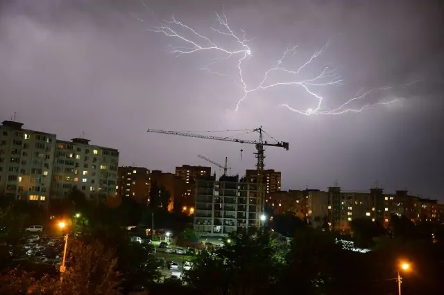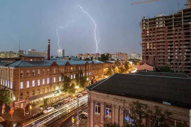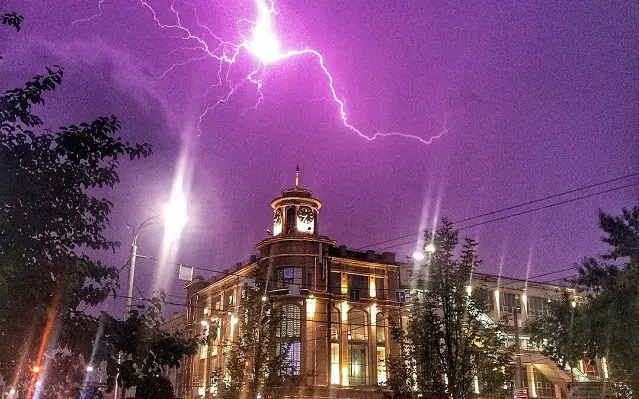 Непогода бушевала несколько часов. В районе площади Кара Маркса молния ударила в землю.