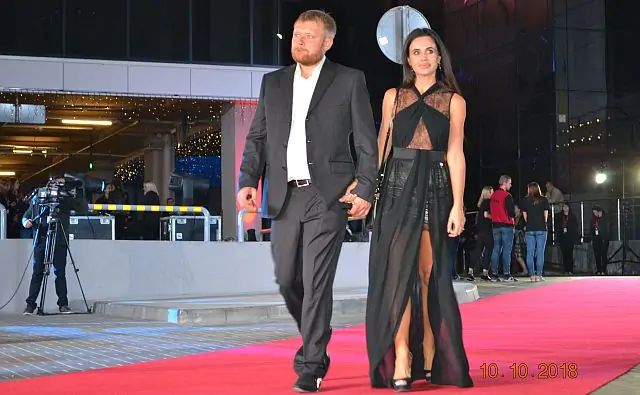 Череду брючных костюмов прервала молодая актриса Екатерина Рябова, вышедшая на красную ковровую дорожку в длинном чёрном платье. Красавицу повсюду сопровождал муж, актёр Дмитрий Пчела.