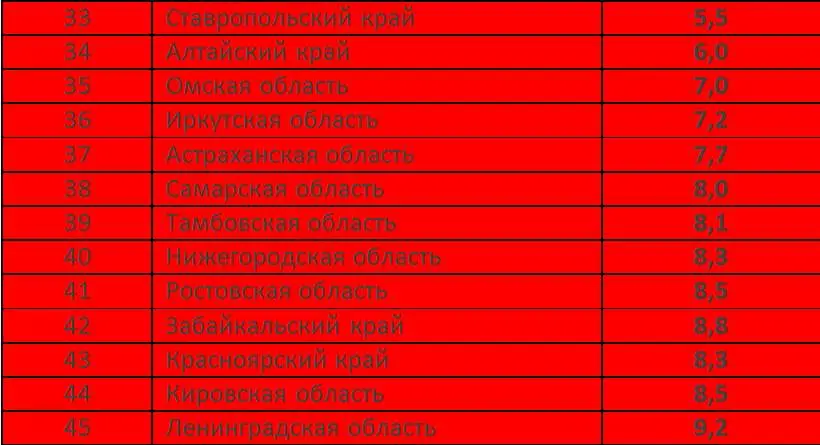 Ещё ниже донского региона опустились Забайкальский и Красноярский края, Кировская и Ленинградская области.