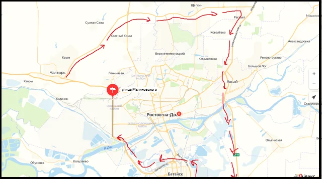 Власти предложили автомобилистам две схемы объезда моста на Малиновского. Первый вариант — со стороны Таганрога через Северный объезд от Чалтыря мимо Щепкинской развязки до М4, затем по М4 до Сальского кольца, потом повернуть на Восточное шоссе и далее по Западному обходу въехать в город через улицу Всесоюзную. Журналисты «Дон ТР» провели эксперимент и выяснили, что водителям понадобится более полутора часов, чтобы объехать закрытый мост Малиновского по предложенной схеме.