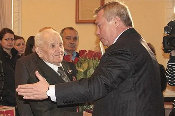 Приветствуя собравшихся, губернатор сообщил, что около часа назад вручил орден Красной Звезды ветерану Великой Отечественной войны из Шахт Ивану Кипе, который в 1943 году совершил подвиг и был тяжело ранен.