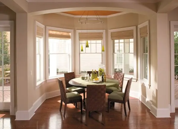 Важно! Наиболее гармонично в таких обеденных зонах смотрятся столы, повторяющие форму эркера.