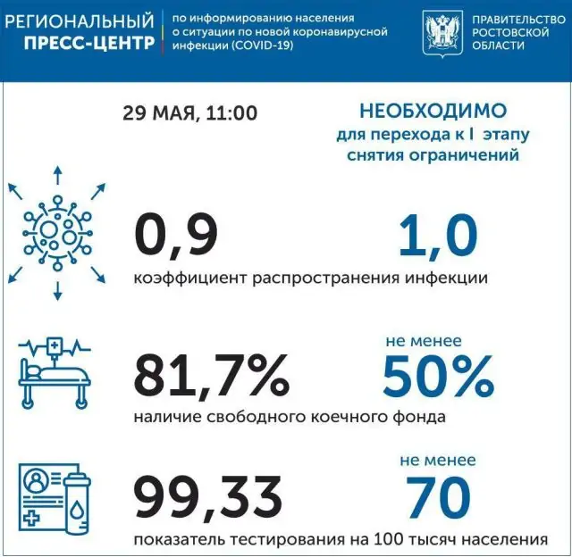 Напомним, что федеральным Роспотребнадзором было утверждено три критерия, по достижении которых регион может начинать постепенно снимать ограничения по коронавирусу. Первый — коэффициент распространения инфекции (норматив не более единицы), второй — наличие свободного коечного фонда в медучреждениях региона, третий — количество проводимых ежесуточно тестов на коронавирус из расчёта на 100 тысяч населения. Ростовская область уже третьи сутки выполняет все три условия.