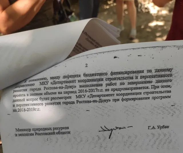 Отчасти это подтверждается и ответами из правительства Ростовской области. Так, у Аллы есть бумага за подписью бывшего министра экологии региона Геннадия Урбана, в которой говорится, что ливнёвка при застройке Левенцовки была построена лишь частично.