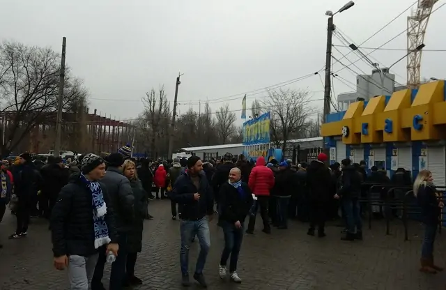 13:03. Перед стадионом очередь из тех, кто ещё не успел купить билеты. Питерцы активно проходят на свой сектор, их больше 1000 приехало на выезд.