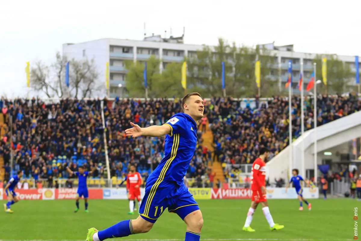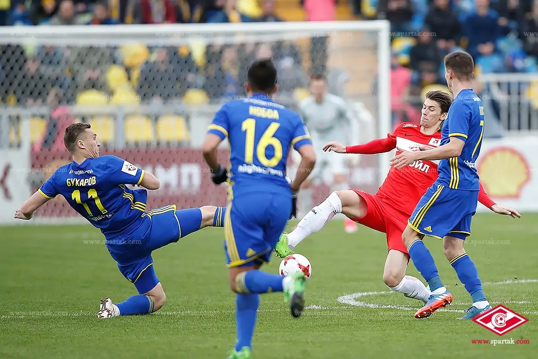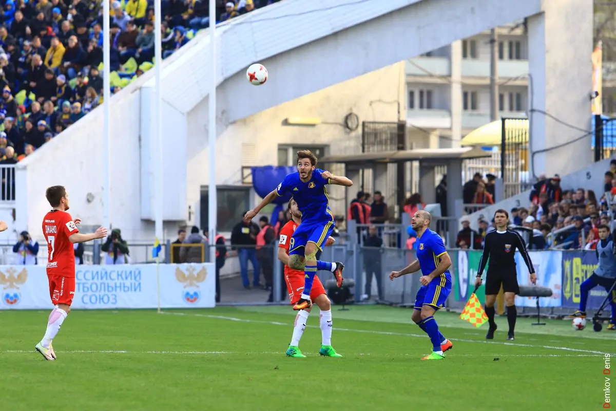 Первые минуты матча команды присматривались друг к другу, а уже на 23-й минуте жёлто-синим удалась фирменная быстрая атака. Тимофей Калачёв прорвался по флангу, дал пас Бухарову, который открыл счёт — 1:0.