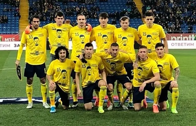 Перед стартовым свистком судьи футболисты «Ростова» сделали общекомандное фото в майках, на которых были написаны слова поддержки Данилу Глебову, сломавшему ногу в матче с «Динамо».