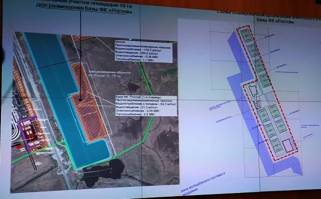 Согласно документам закупки, базу «Ростова» планируют построить на площади в 21 гектар. На её территории предусмотрен главный корпус с раздевалками для тренерского и игрового составов, общежитие, физиотерапевтический и массажный кабинеты, конференц-зал на 40 человек, пищеблок, обеденный зал, кабинет президента клуба и другие помещения.