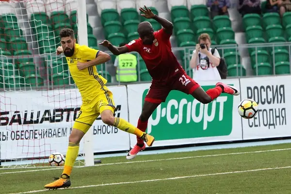Миха Мевля (в жёлтом) забил свой первый гол в сезоне. Фото пресс-службы «Уфы»