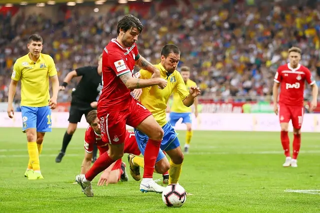 66-я минута. Глебов несуразно пробил с линии штрафной и москвичи убежали вперёд. Миранчук устроил мастер-класс для игрока хозяев и показал, как нужно бить и обыгрывать. Чуть-чуть не попал.