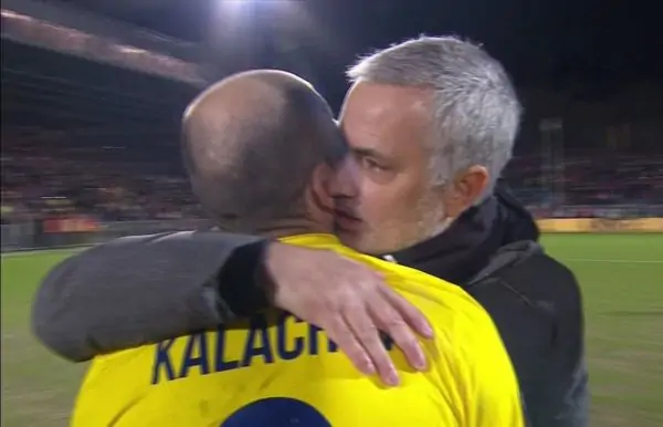 Моуринью обнимает Калачёва, скриншот с эфира «Матч-ТВ»