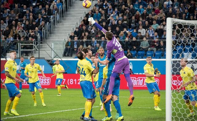 Сергей Песьяков отбил много мячей, но два всё же пропустил, fc-zenit.ru
