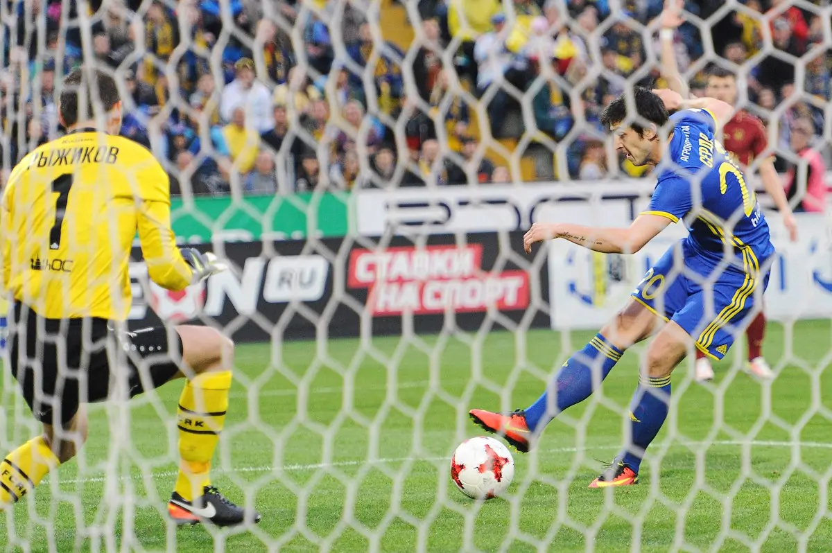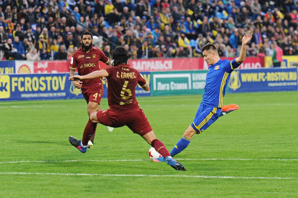 В матче 28-го тура российской премьер-лиги на стадионе «Олимп-2» футбольный клуб «Ростов» уверенно обыграл казанский «Рубин». Встреча прошла в воскресенье, 14 мая, и завершилась со счётом 4:2.