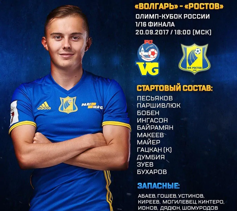 В среду, 20 сентября, футбольный клуб «Ростов» выиграл у «Волгаря» в матче 1/16 финала Кубка России. Встреча проходила в Астрахани на стадионе «Центральный» и завершилась со счётом 2:0 в пользу жёлто-синих.