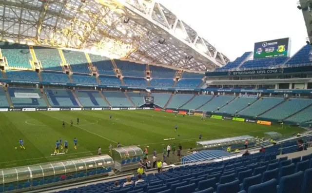 19:40. Сегодня на поле против ФК «Сочи» на поле выйдут 17-летние игроки академии жёлто-синих. Молодёжная команда «Ростова» уже тренируется на стадионе.
