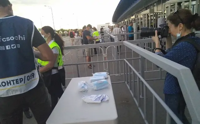 19:53. На стадионе действует масочный режим, также на входе у болельщиков измеряют температуру.