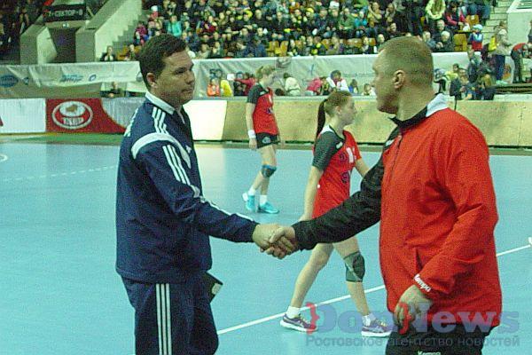 Проливной холодный дождь не испугал ростовских любителей гандбола, пришедших после работы посмотреть на игру любимой команды. Аншлага не случилось, но две трети зала ростовского Дворца спорта определённо были заполнены.