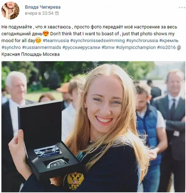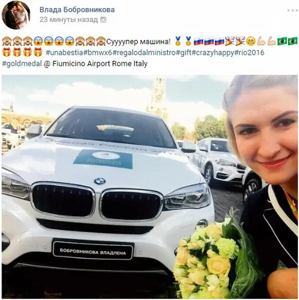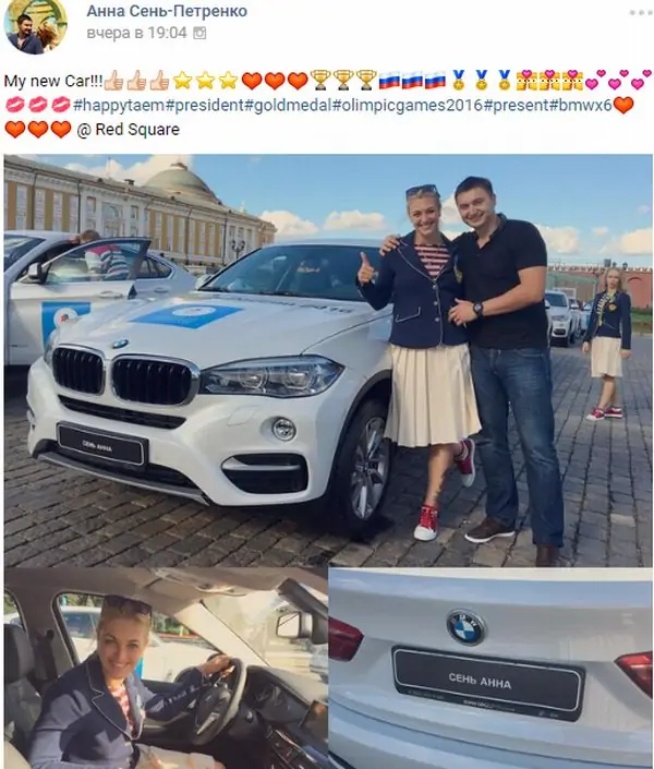 Кроме этого, премьер-министр России Дмитрий Медведев от имени Фонда поддержки олимпийцев вручил призёрам олимпиады ключи от BMW и пожелал новым владельцам удачи на дорогах. Отметим, что золотые медалисты стали обладателями BMW X6, серебряные призёры получили BMW X4, а бронзовые — BMW X3. Медведев отметил, что все экземпляры памятных моделей X-серии были собраны в России на заводе в Калининграде.