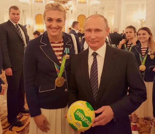 После награждения женская сборная России по гандболу подарила Владимиру Путину мяч, которым играла в финале, и сделала селфи с президентом.
